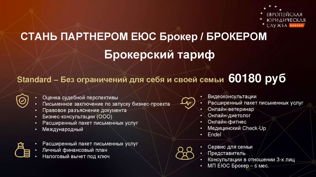 СТАНЬ ПАРТНЕРОМ ЕЮС Брокер / БРОКЕРОМБрокерский тариф