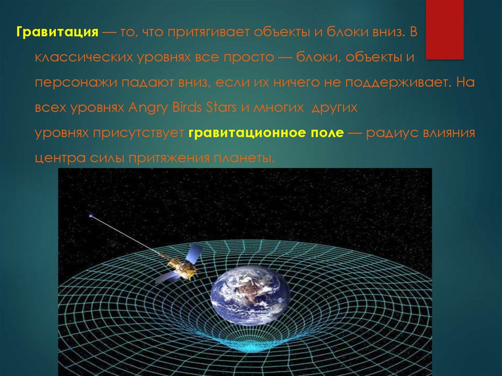 Гравитация — то, что притягивает объекты и блоки вниз. Вклассических уровнях все просто — блоки, объекты и