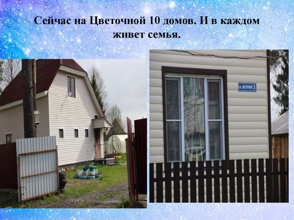 Сейчас на Цветочной 10 домов. И в каждомживет семья.