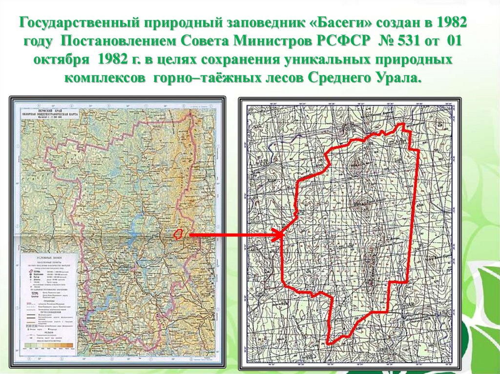 Государственный природный заповедник «Басеги» создан в 1982году Постановлением Совета Министров РСФСР № 531 от 01