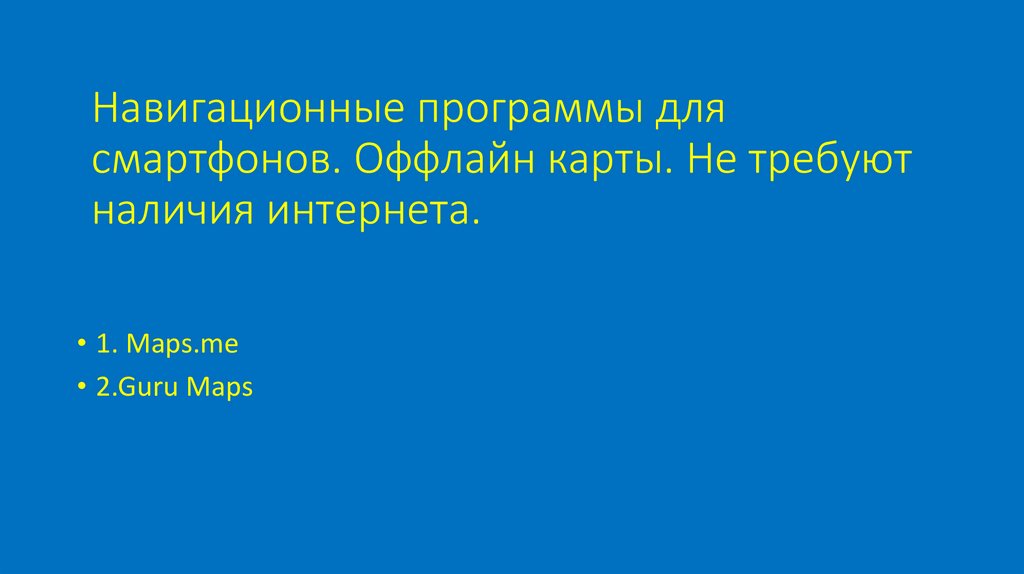 Навигационные программы длясмартфонов. Оффлайн карты. Не требуют