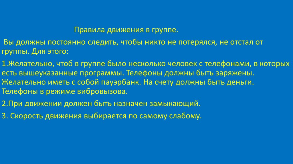 Правила движения в группе.Вы должны постоянно следить, чтобы никто не потерялся, не отстал от