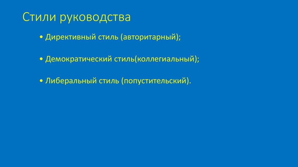 Стили руководства• Директивный стиль (авторитарный);