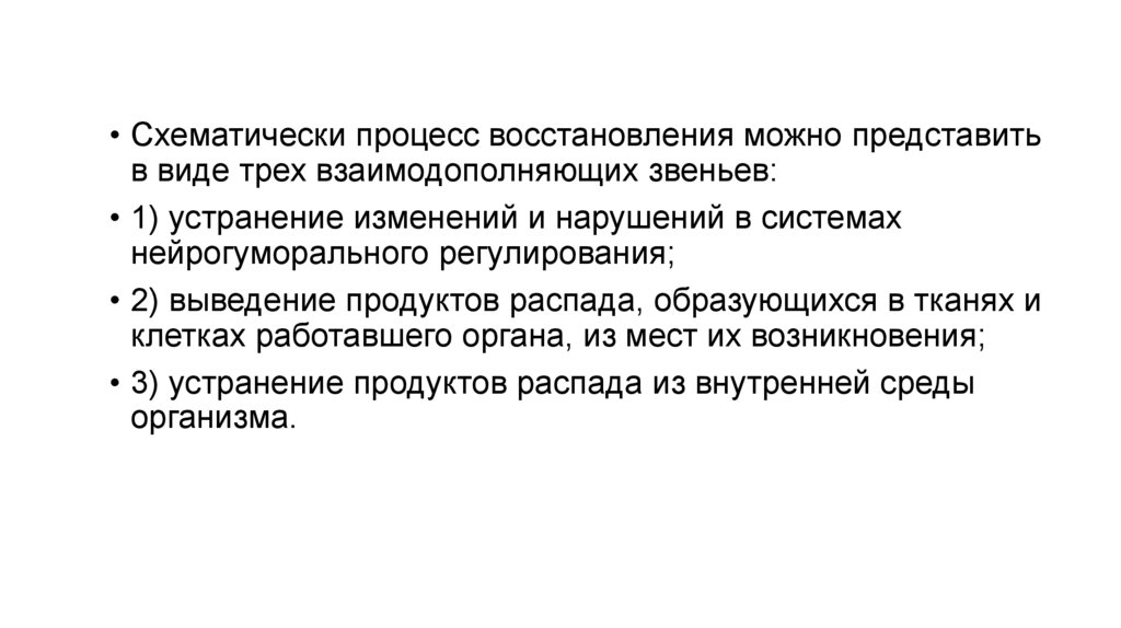 • Схематически процесс восстановления можно представитьв виде трех взаимодополняющих звеньев: