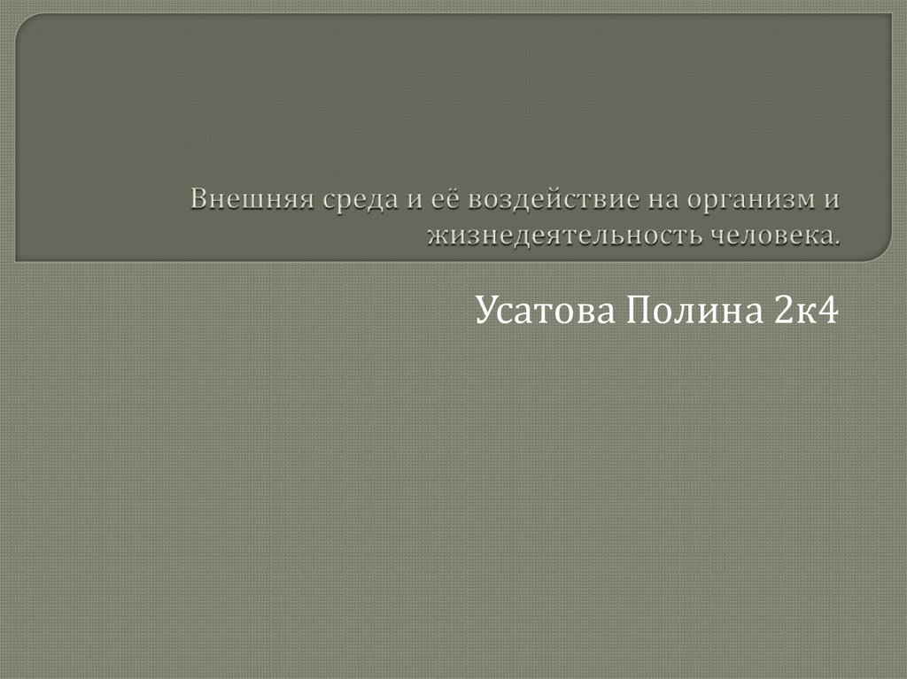 Внешняя среда и её воздействие на организм и жизнедеятельность человека