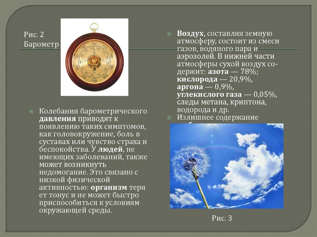 барометрическое давление2. газовый состав