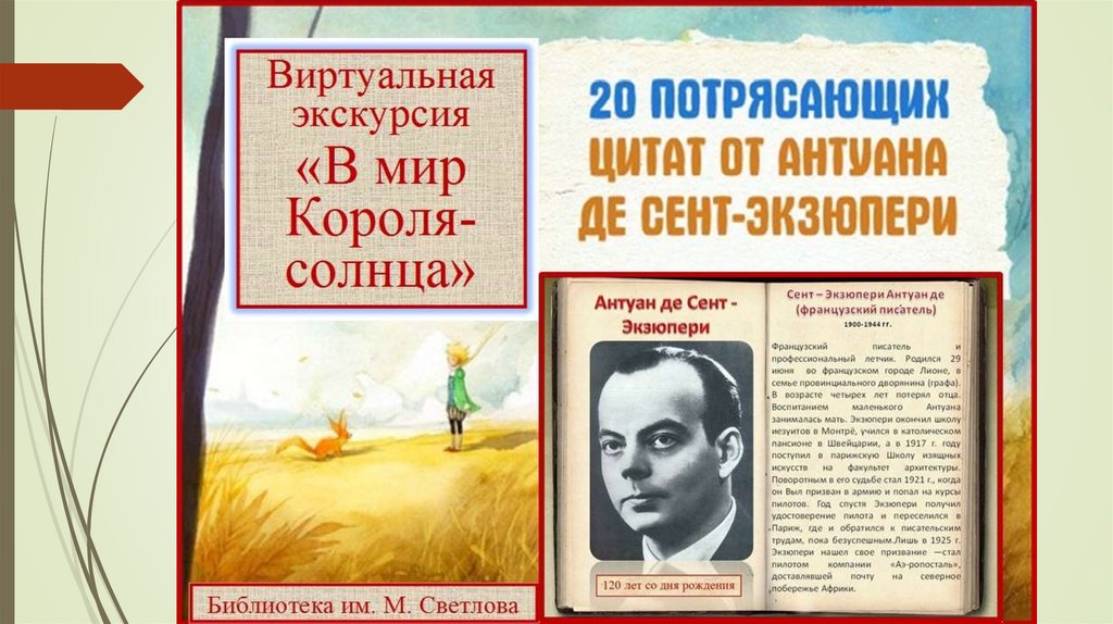 Виртуальная экскурсия «В мир Короля- солнца». Антуан де Сент - Экзюпери