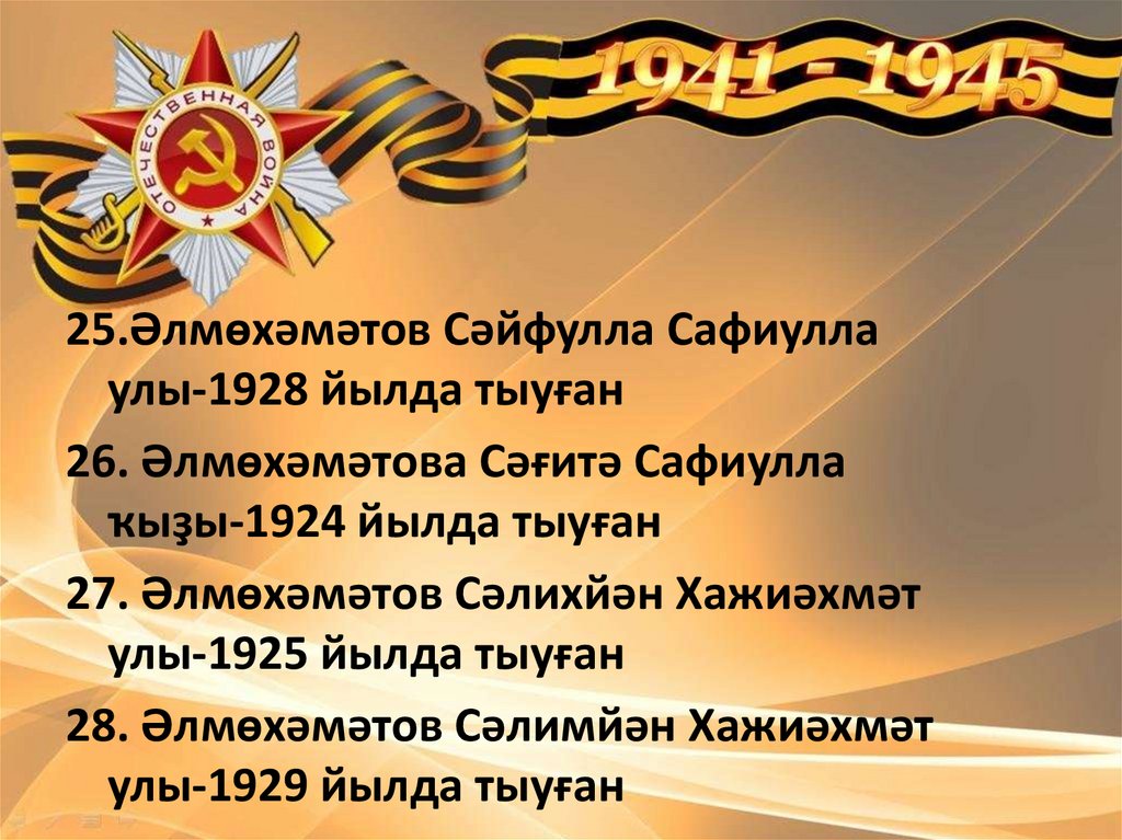 25.Әлмөхәмәтов Сәйфулла Сафиуллаулы-1928 йылда тыуған