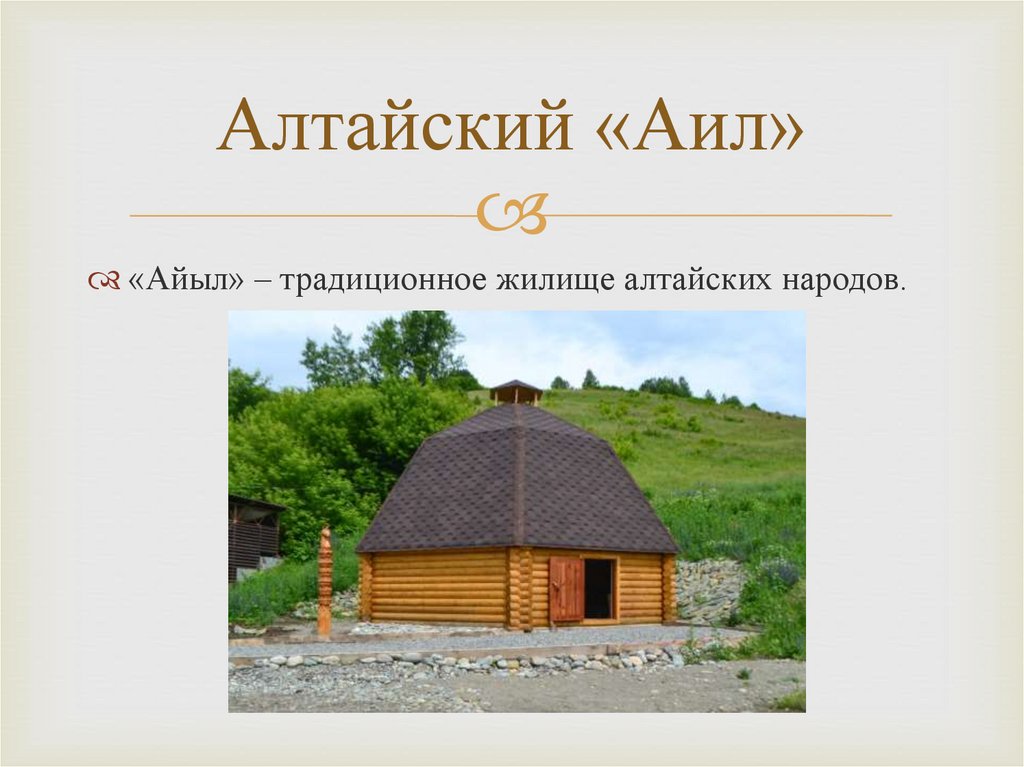 Алтайский «Аил»«Айыл» – традиционное жилище алтайских народов.