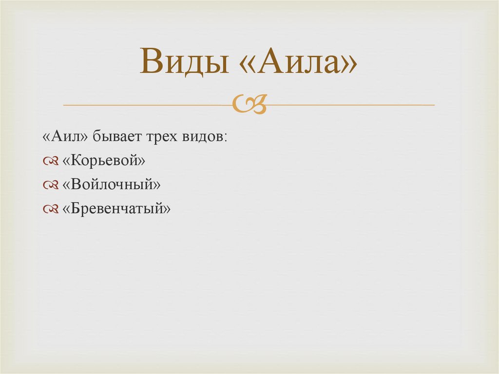 Виды «Аила»«Аил» бывает трех видов:
