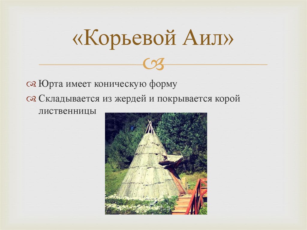«Корьевой Аил»Юрта имеет коническую форму