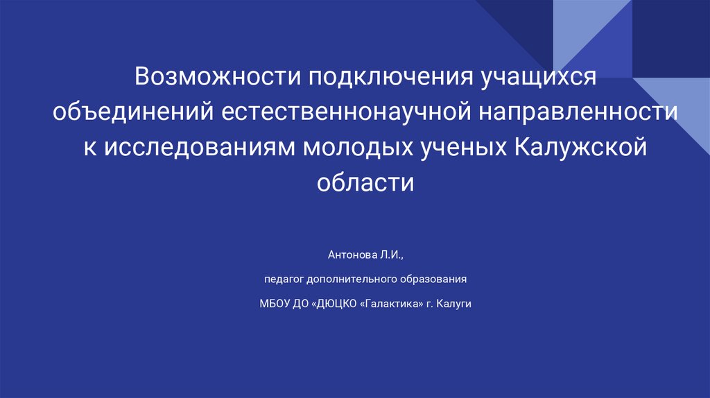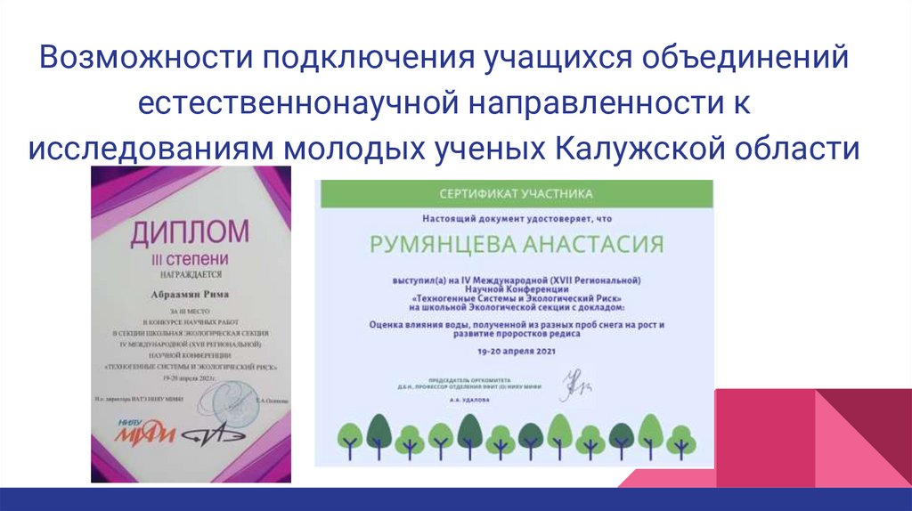 Подключение учащихся объединений естественнонаучной направленности к исследованиям молодых ученых Калужской области