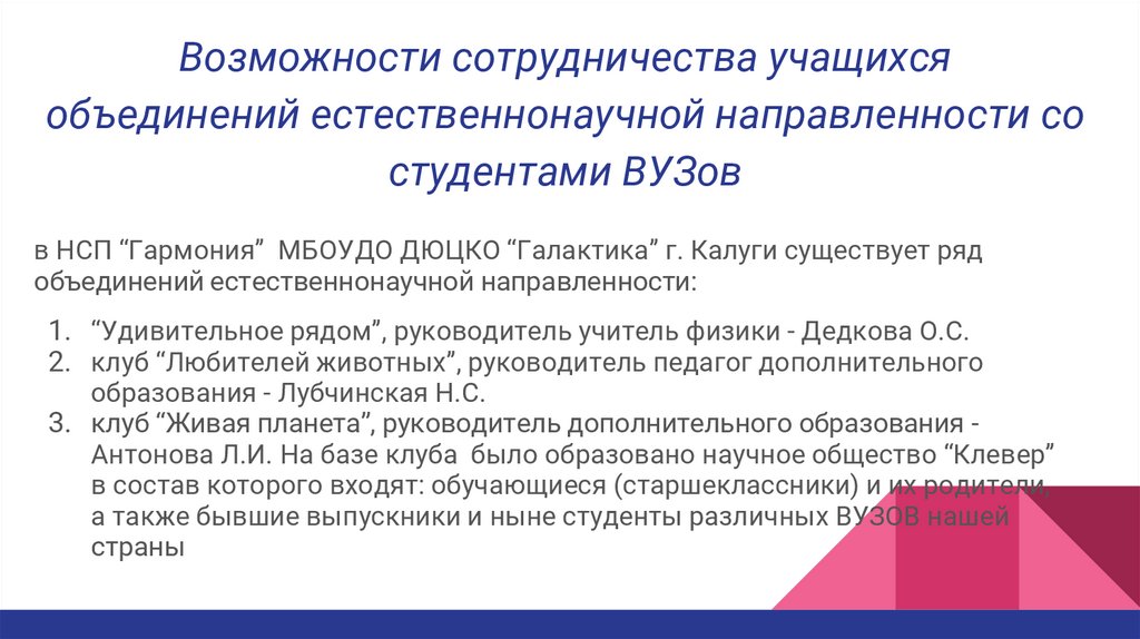 Возможности сотрудничества учащихсяобъединений естественнонаучной направленности со