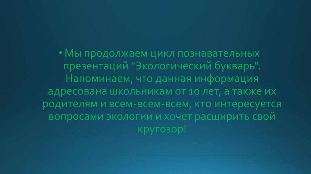 • Мы продолжаем цикл познавательныхпрезентаций "Экологический букварь".