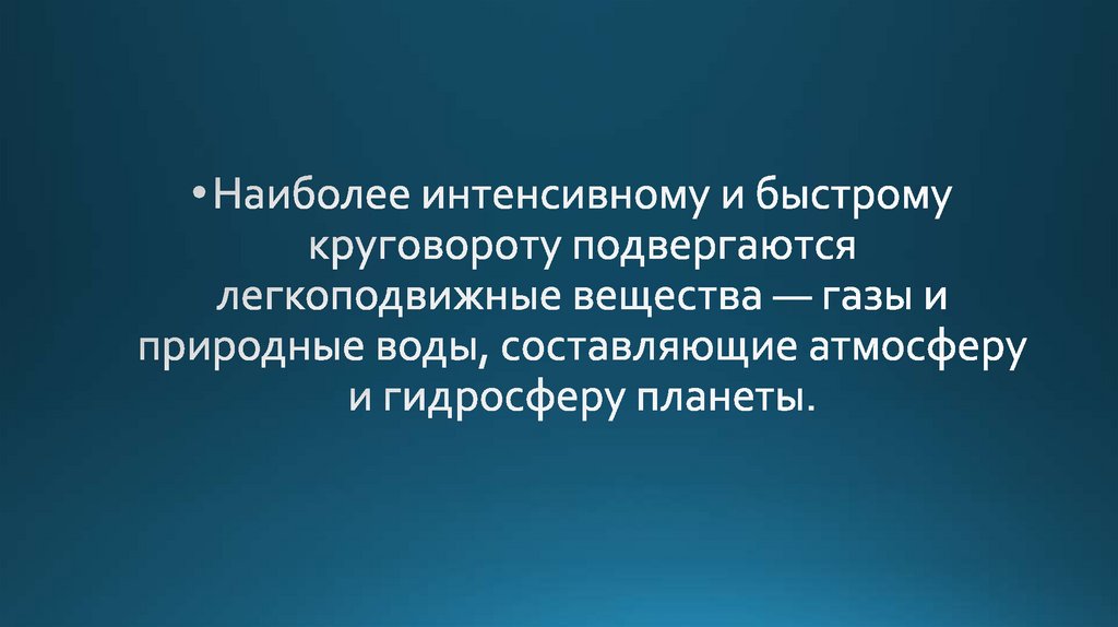 • Большой круговорот веществ в биосферехарактеризуется двумя важными моментами: он