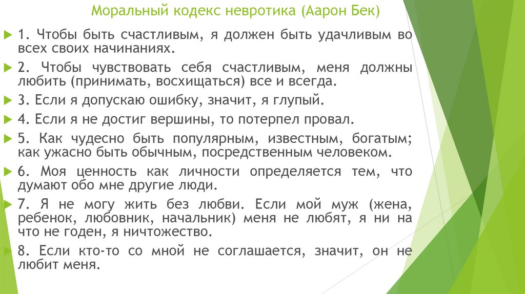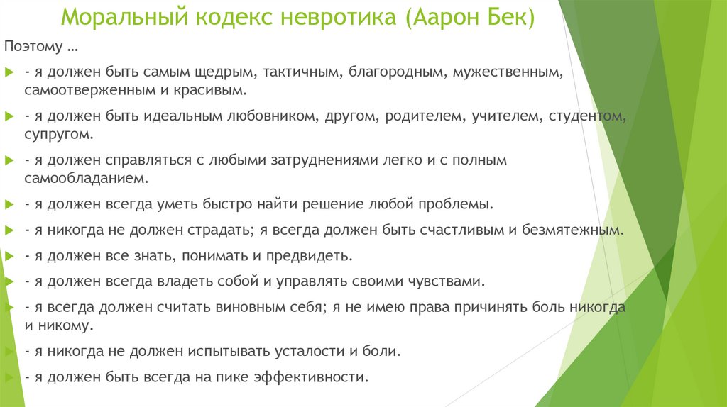 Моральный кодекс невротика (Аарон Бек)Поэтому …