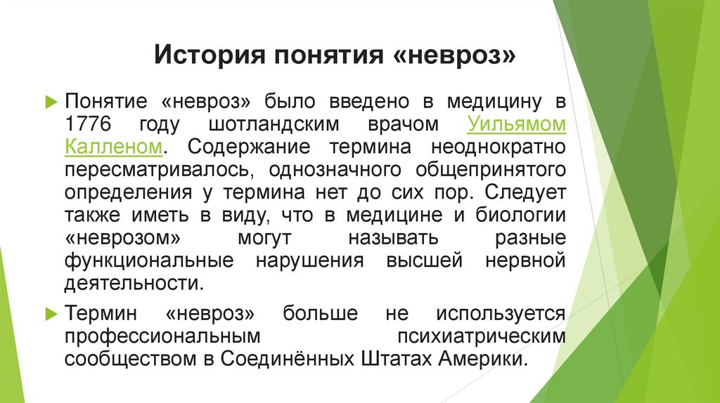 История понятия «невроз»Понятие «невроз» было введено в медицину в