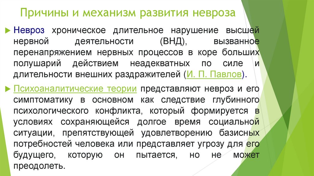 Причины и механизм развития неврозаНевроз хроническое длительное нарушение высшей