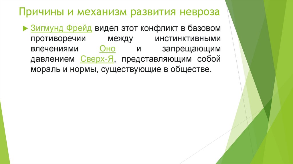Причины и механизм развития неврозаЗигмунд Фрейд видел этот конфликт в базовом