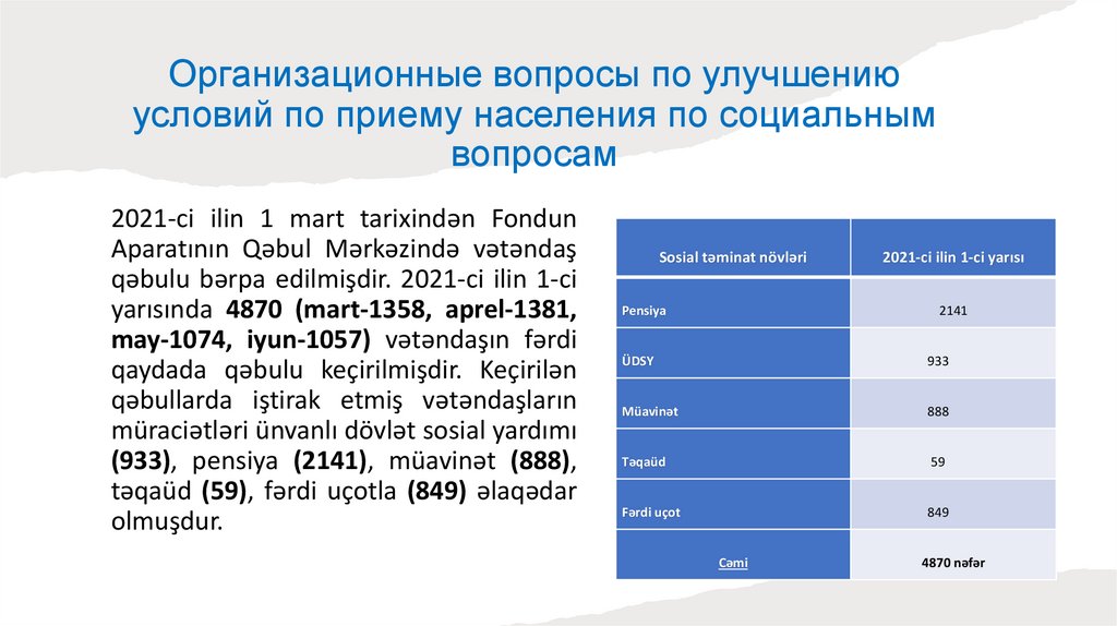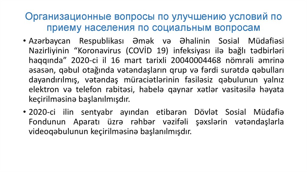 Организационные вопросы по улучшениюусловий по приему населения по социальным