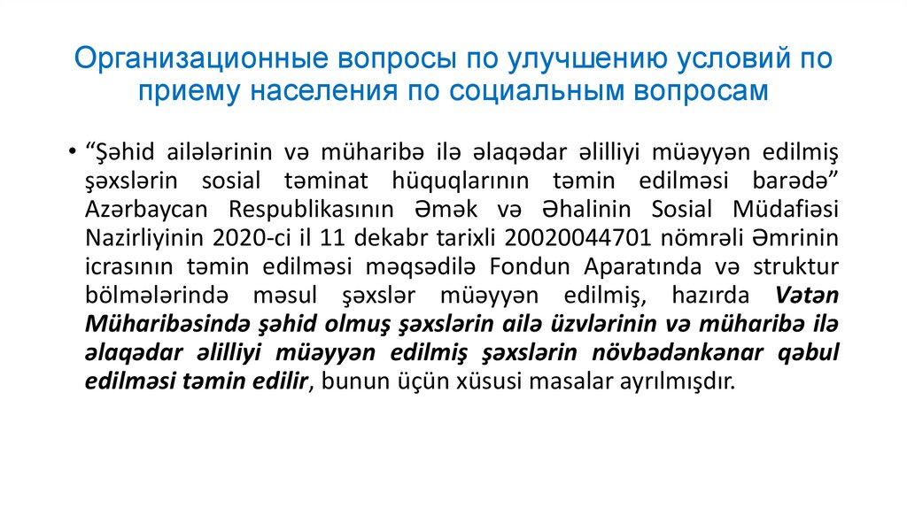 • “Şəhid ailələrinin və müharibə ilə əlaqədar əlilliyi müəyyən edilmiş
