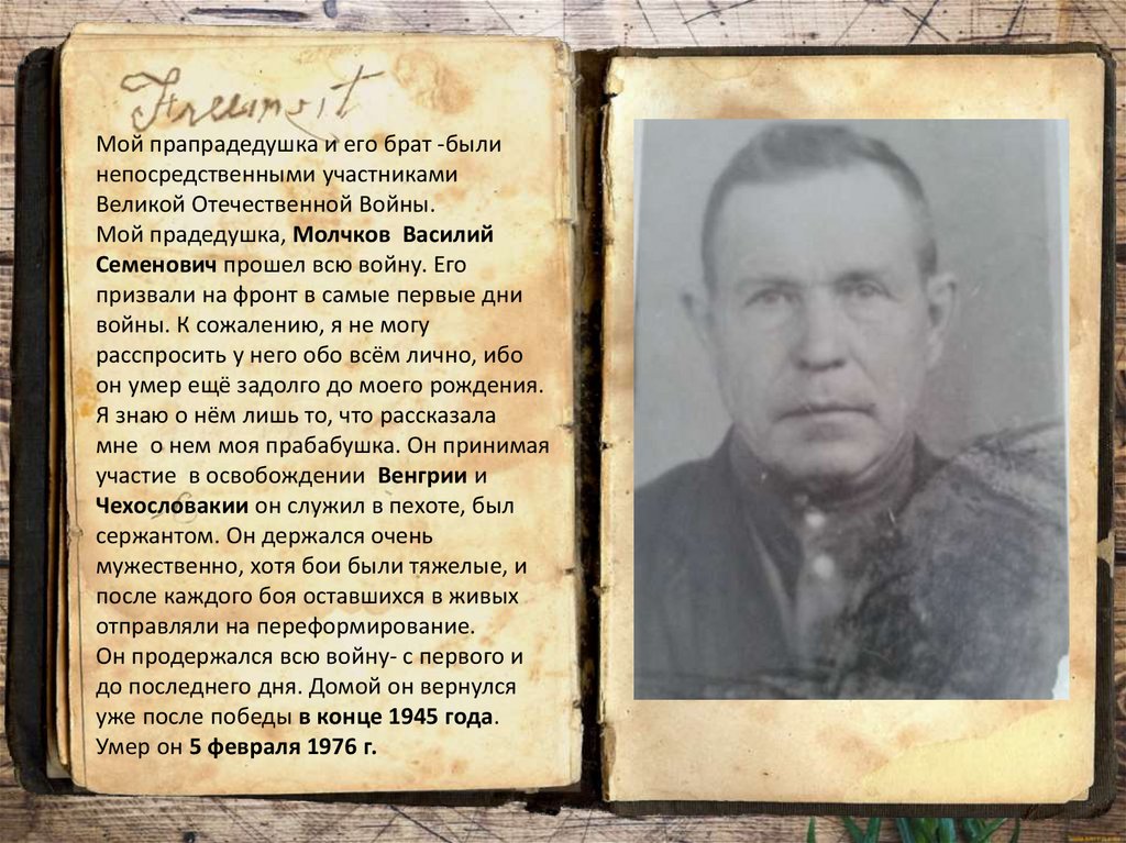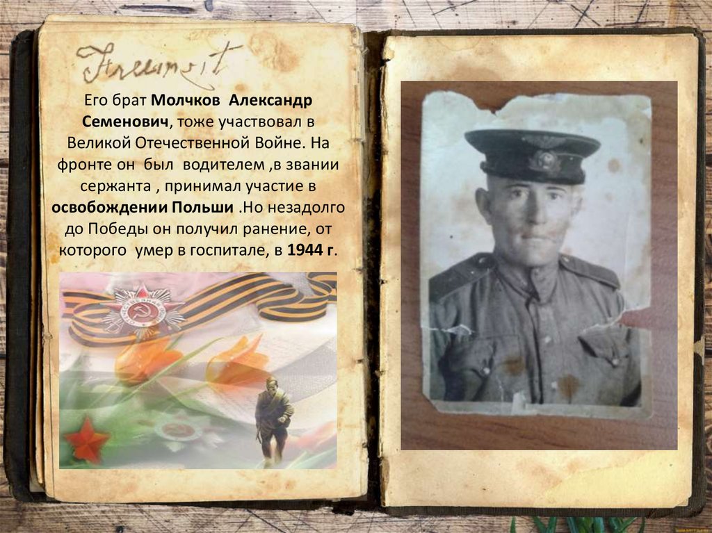 Его брат Молчков АлександрСеменович, тоже участвовал в