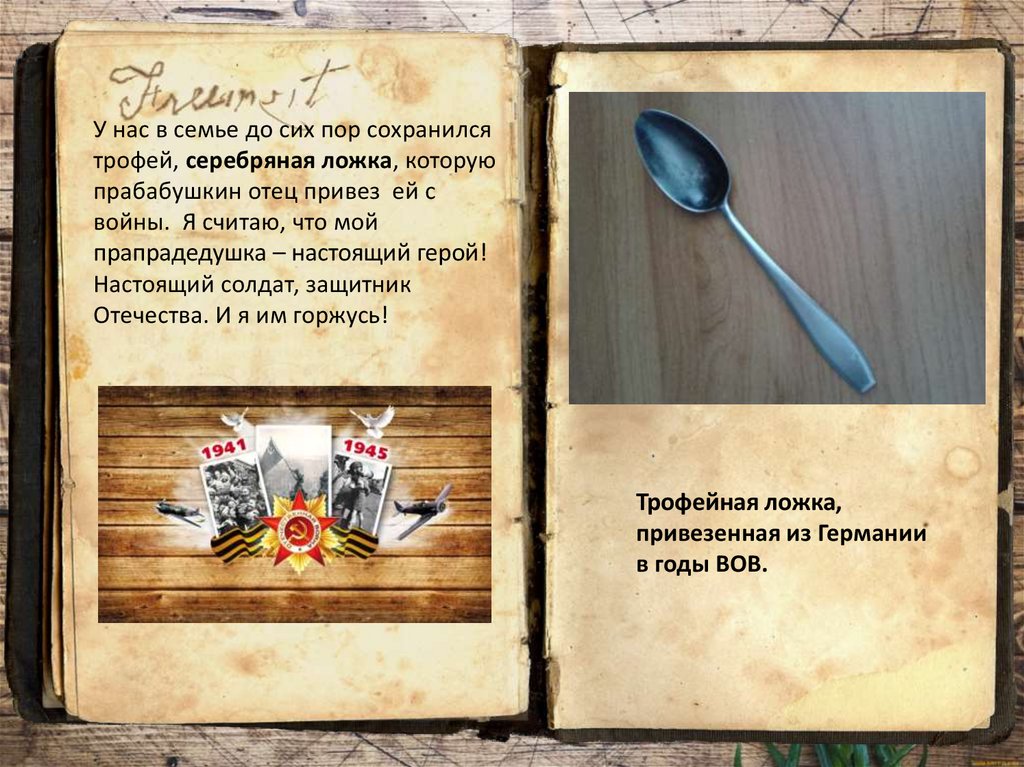 У нас в семье до сих пор сохранилсятрофей, серебряная ложка, которую