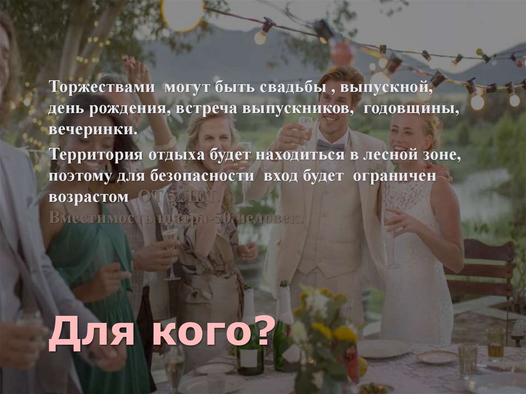 Итак, мы сделали базу отдыха. Туда можноприходить праздновать любое ваше торжество. Дело