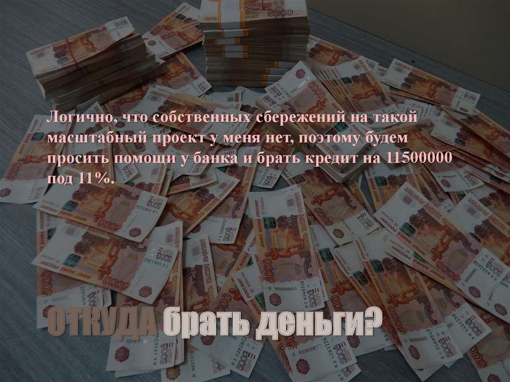 Логично, что собственных сбережений на такоймасштабный проект у меня нет, поэтому будем