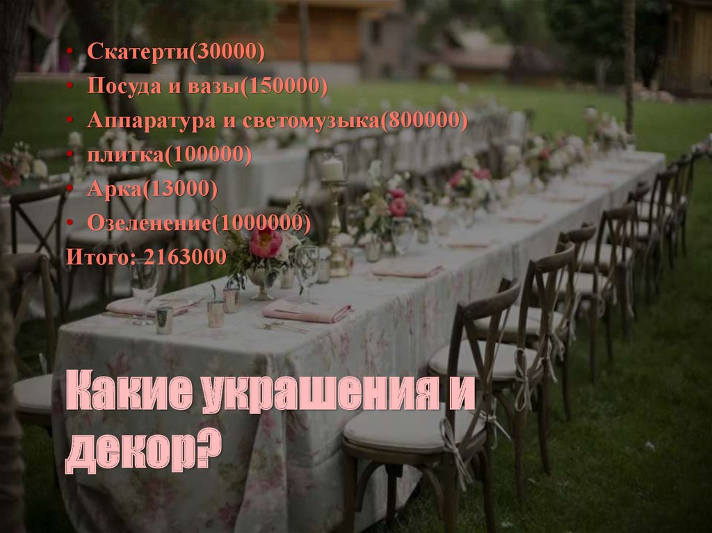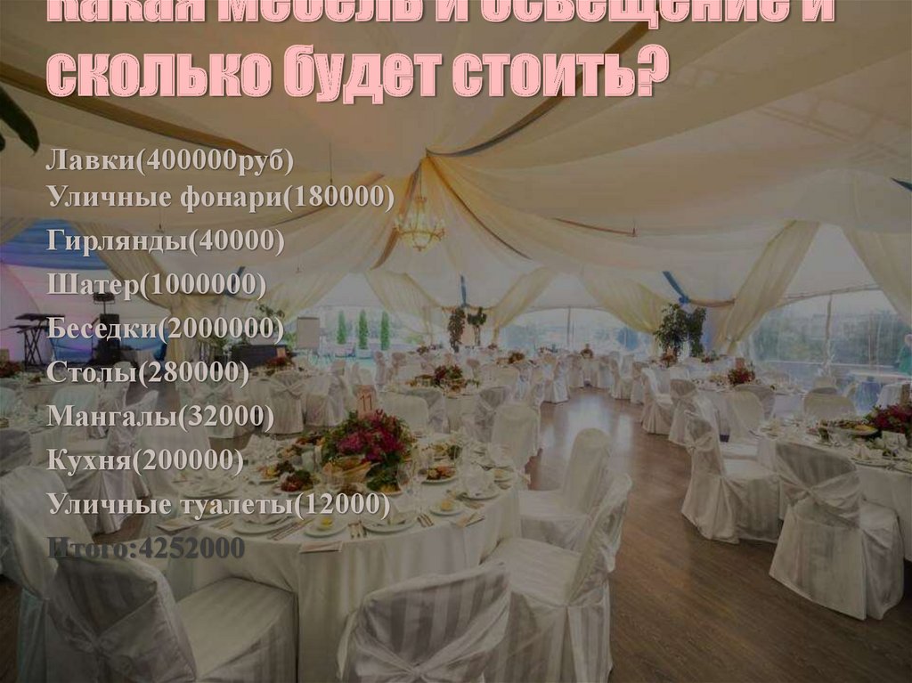воздухе. Украшения, столы, готовка, свето-музыка,