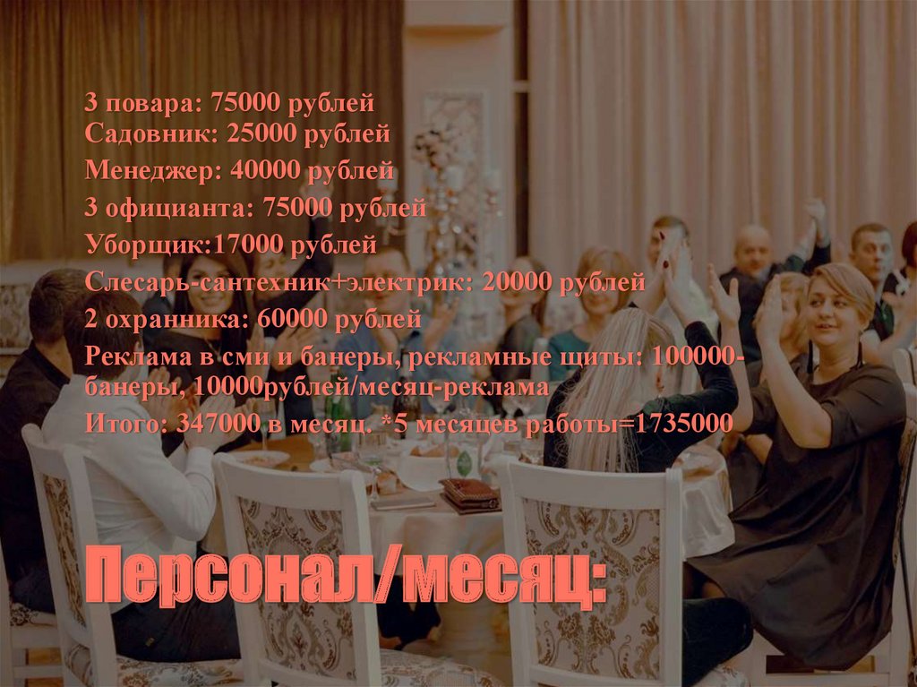 3 повара: 75000 рублейСадовник: 25000 рублей