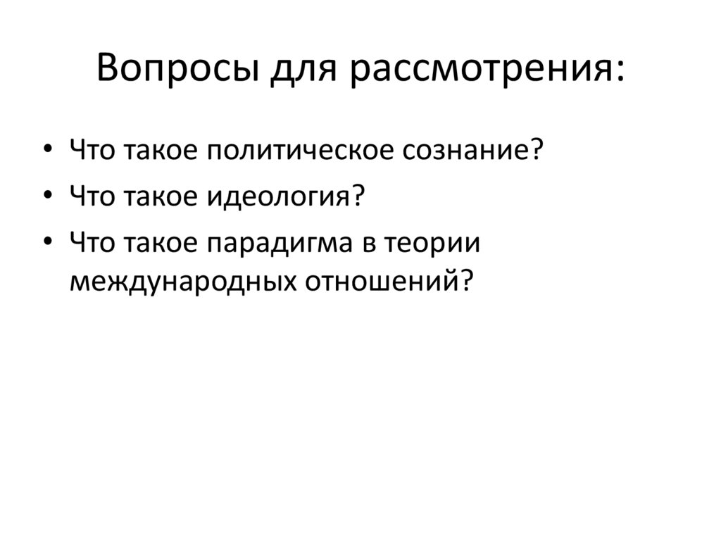 Вопросы для рассмотрения:• Что такое политическое сознание?