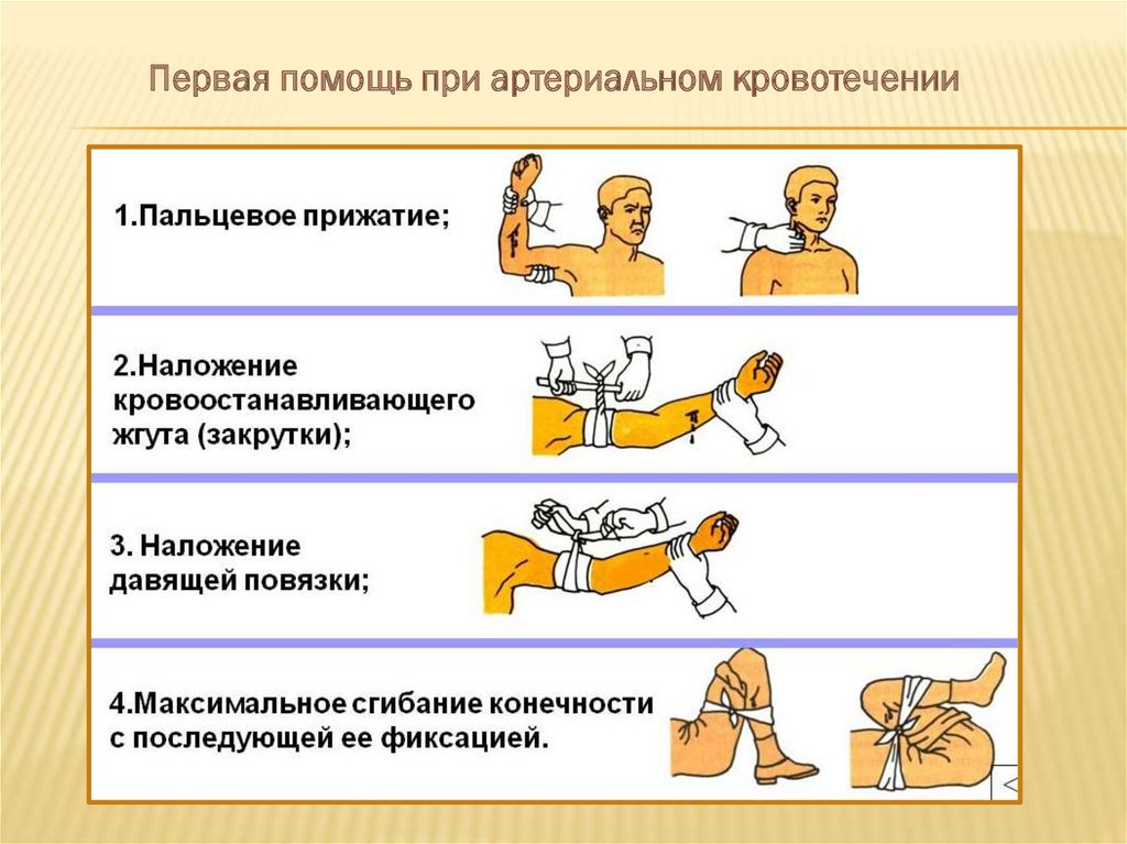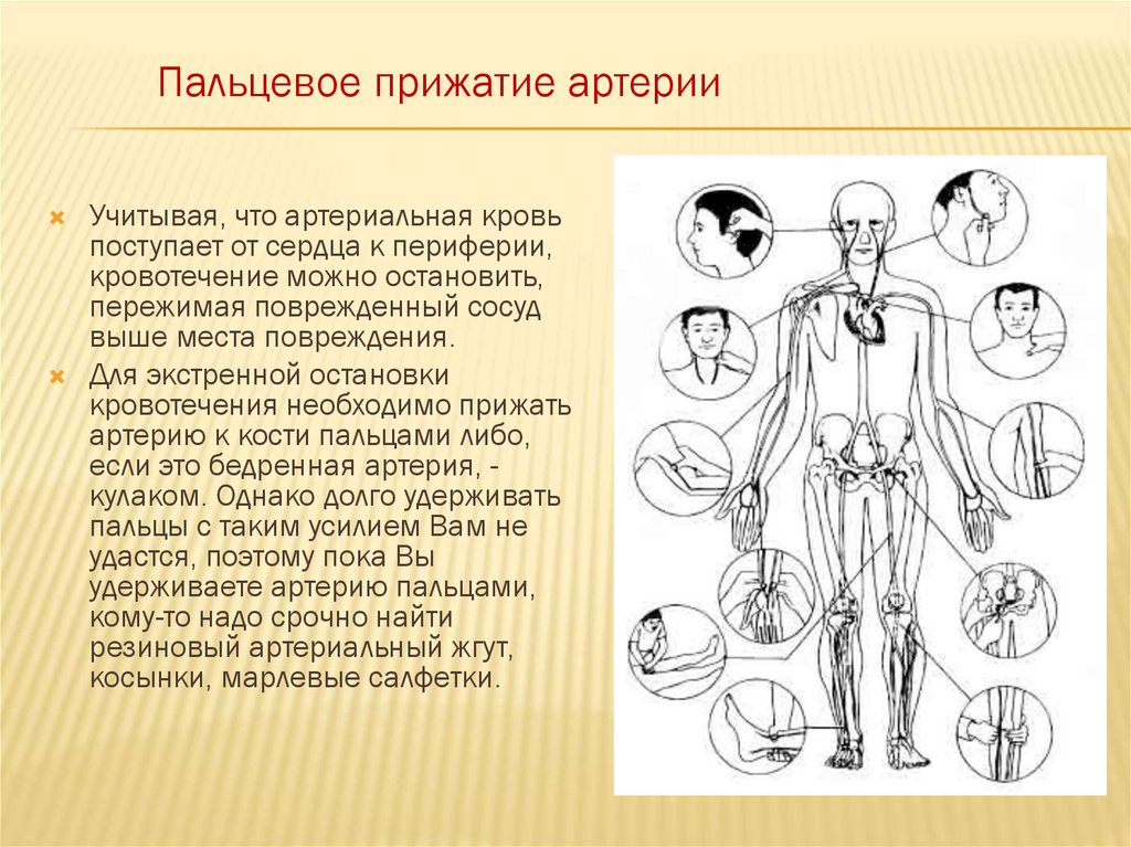 Пальцевое прижатие артерииУчитывая, что артериальная кровь