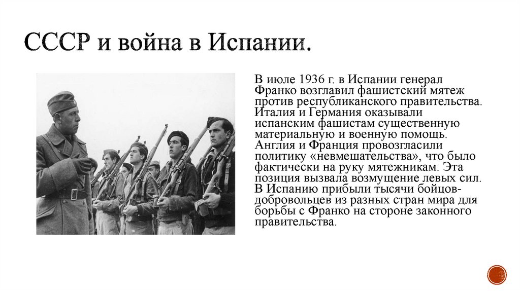 В июле 1936 г. в Испании генералФранко возглавил фашистский мятеж