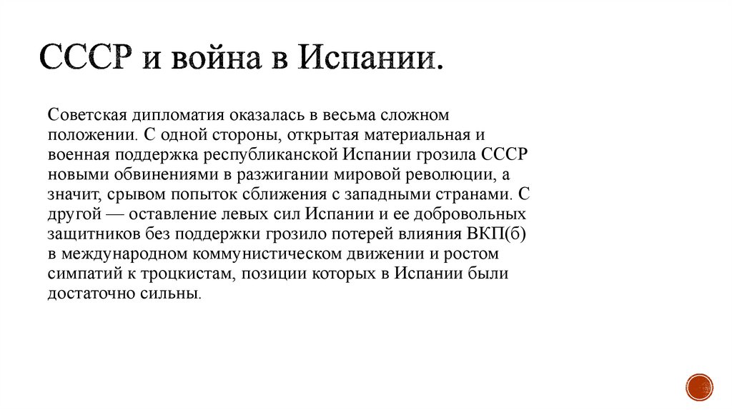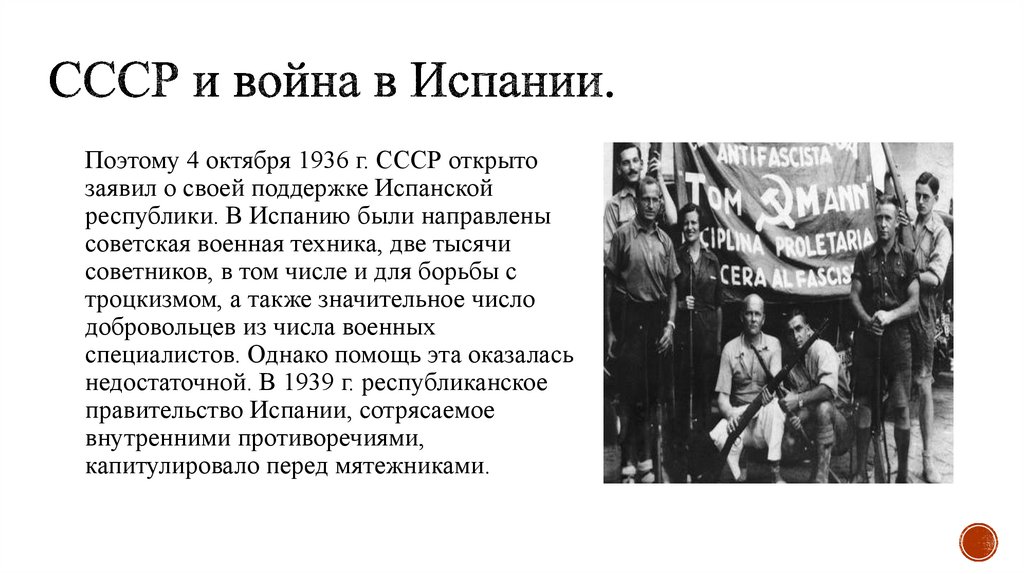 Поэтому 4 октября 1936 г. СССР открытозаявил о своей поддержке Испанской