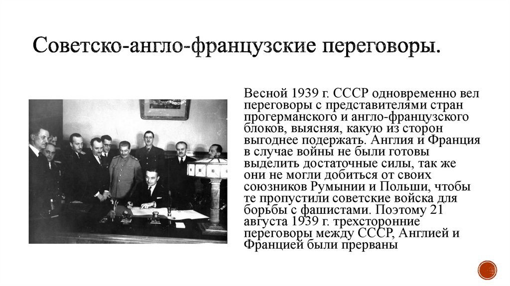 5. Мюнхенское соглашение6. Советско-англо-французские переговоры