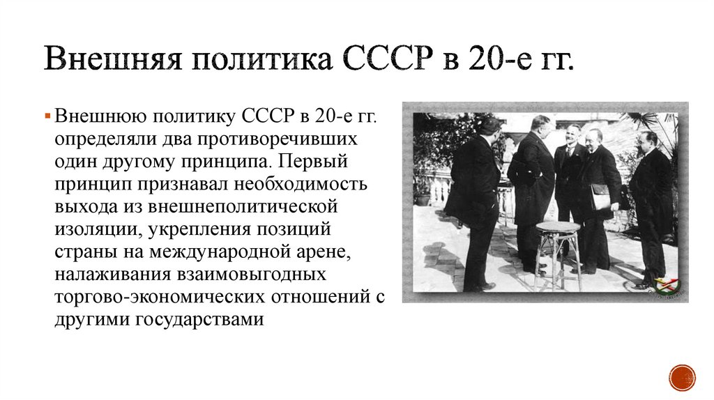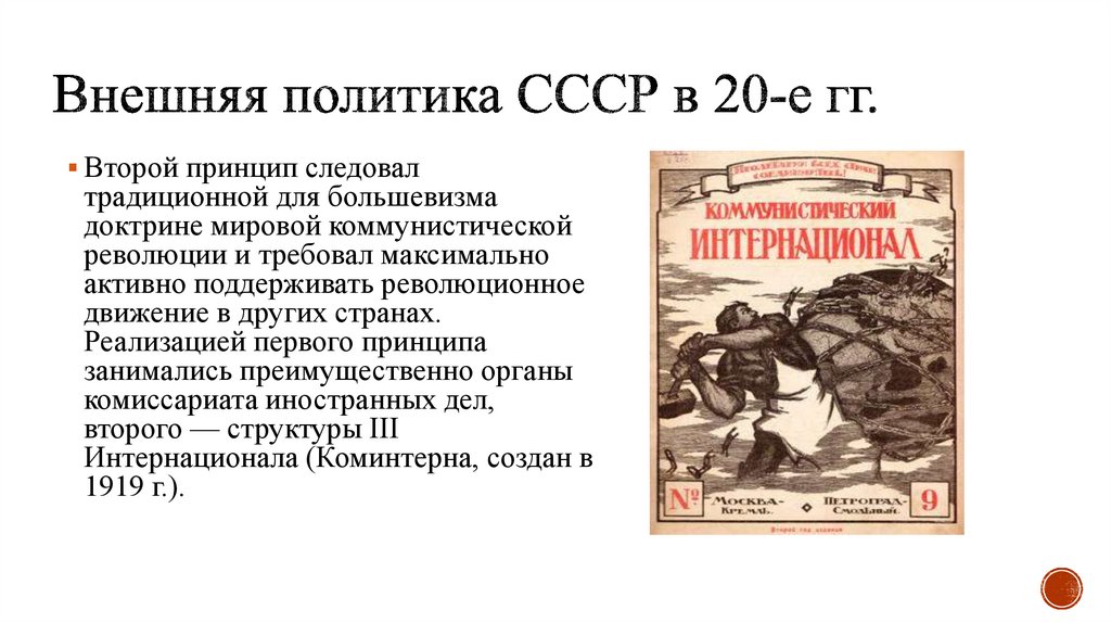 Внешнюю политику СССР в 20-е гг.определяли два противоречивших