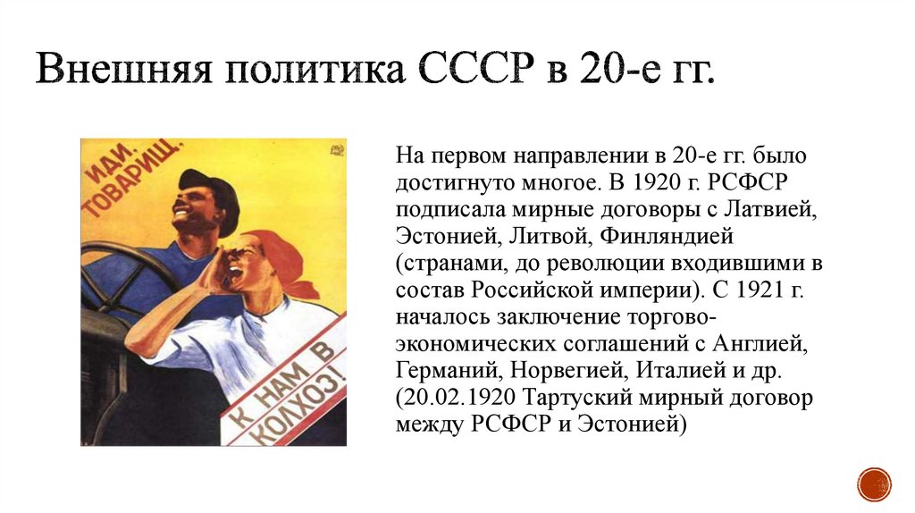 На первом направлении в 20-е гг. былодостигнуто многое. В 1920 г. РСФСР