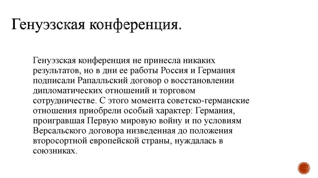 Генуэзская конференция не принесла никакихрезультатов, но в дни ее работы Россия и Германия
