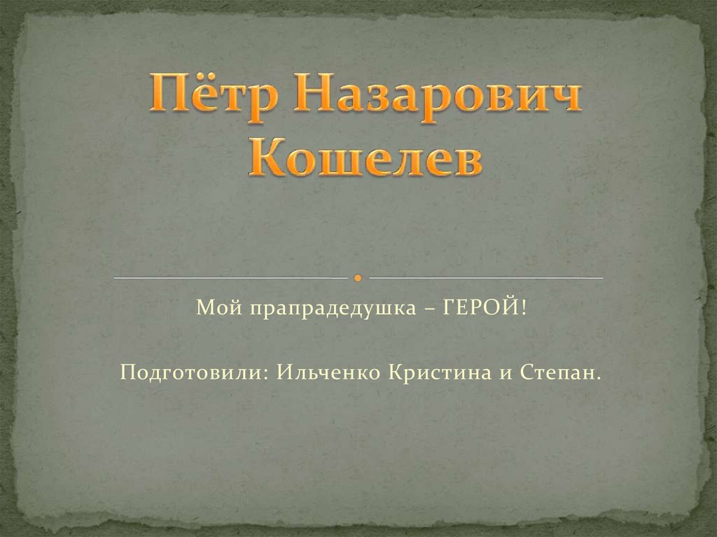 Мой прапрадедушка – ГЕРОЙ! Пётр Назарович Кошелев