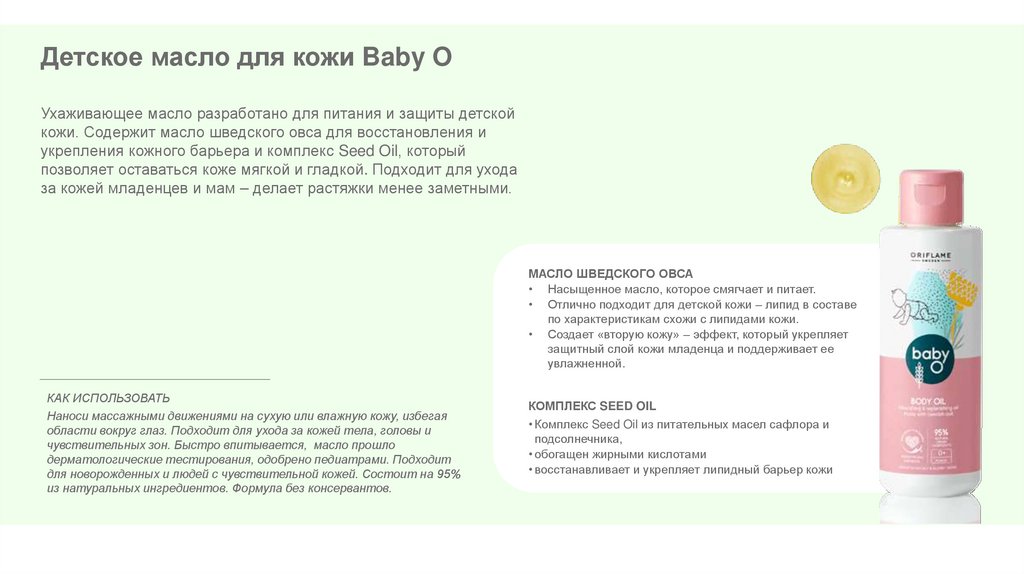 Детское масло для кожи Baby OУхаживающее масло разработано для питания и защиты детской