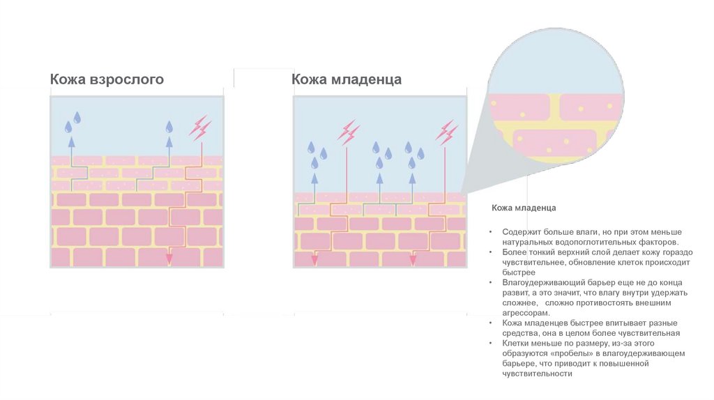 Уникальность кожи младенцевКожа младенцев очень сильно отличается от кожи взрослых: