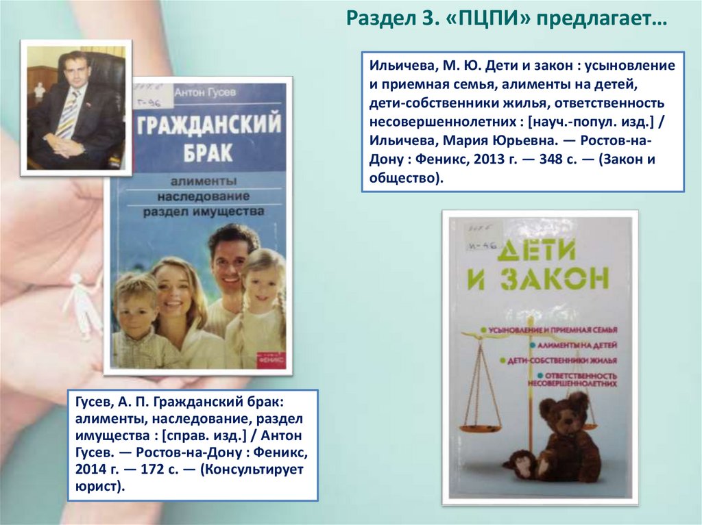 Раздел 3. «ПЦПИ» предлагает…Ильичева, М. Ю. Дети и закон : усыновление