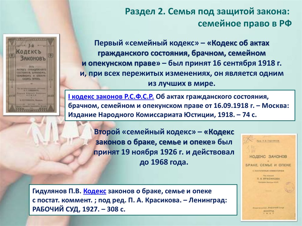 Раздел 2. Семья под защитой закона:семейное право в РФ