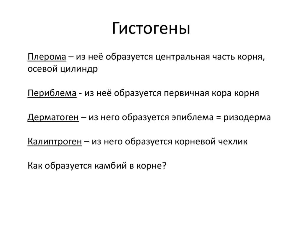 ГистогеныПлерома – из неё образуется центральная часть корня,
