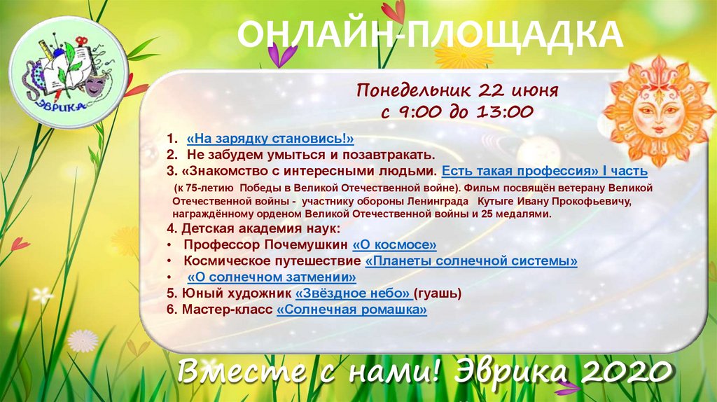 ОНЛАЙН-ПЛОЩАДКАПонедельник 22 июня