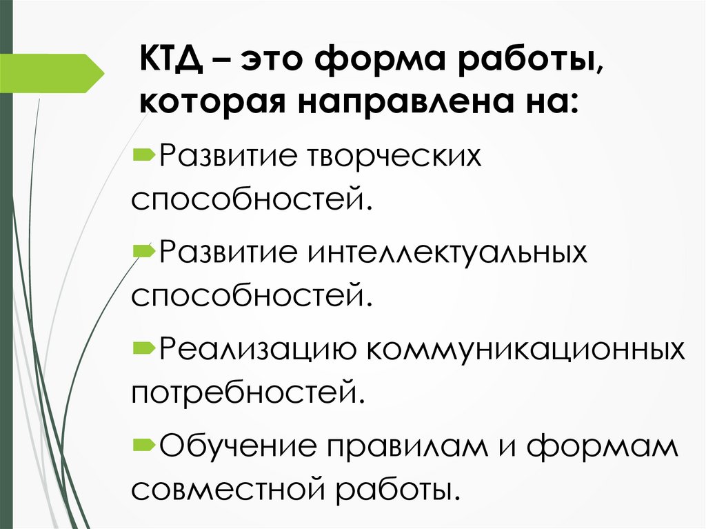КТД – это форма работы,которая направлена на: