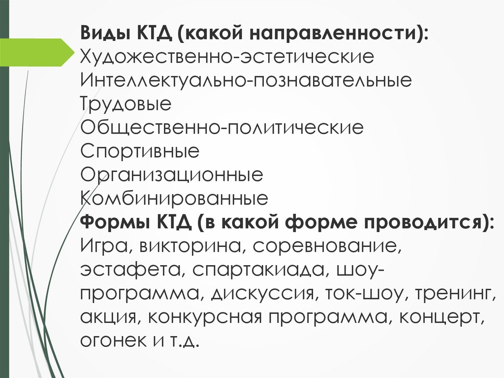 Виды КТД (какой направленности):Художественно-эстетические