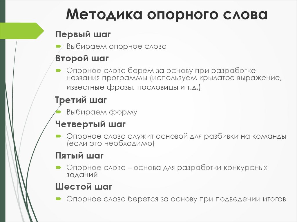 Опорное слово берется за основу при подведении итогов