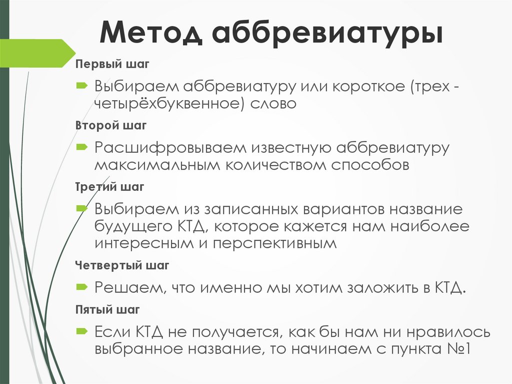 Метод аббревиатурыПервый шаг